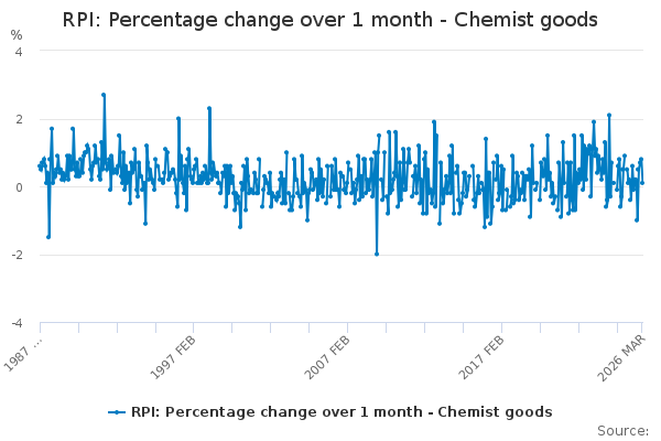 Download this time seriesRPI: Percentage change over 1 month - Chemist goods