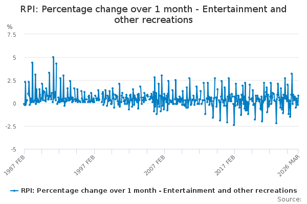 Download this time seriesRPI: Percentage change over 1 month - Entertainment and other recreations