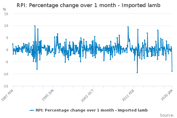 Download this time seriesRPI: Percentage change over 1 month - Imported lamb