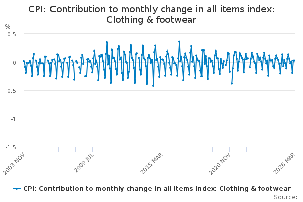 Download this time seriesCPI: Contribution to monthly change in all items index: Clothing & footwear