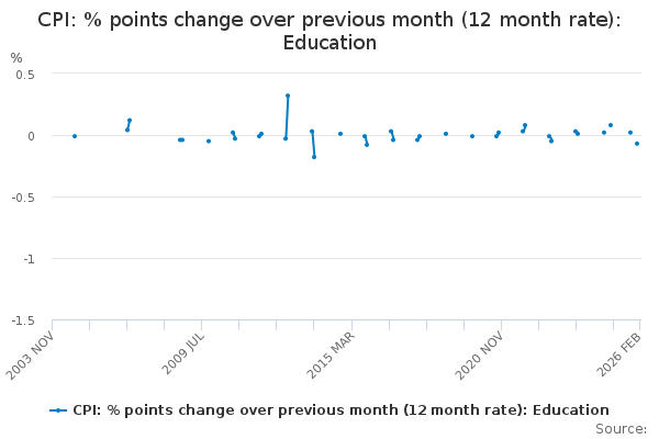 Download this time seriesCPI: % points change over previous month (12 month rate): Education