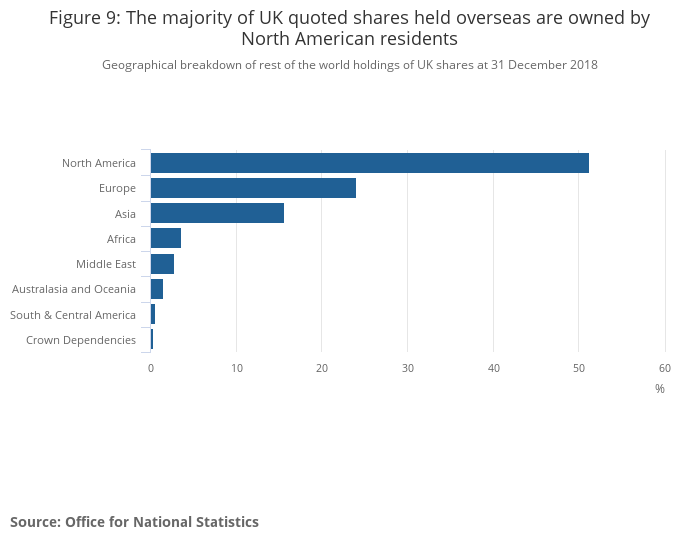 Figure 9: The majority of UK quoted shares held overseas are owned by North American residents