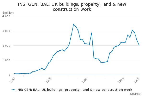 Download this time seriesINS: GEN: BAL: UK buildings, property, land & new construction work