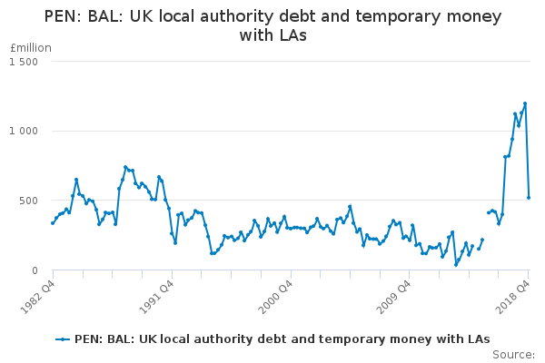 Download this time seriesPEN: BAL: UK local authority debt and temporary money with LAs