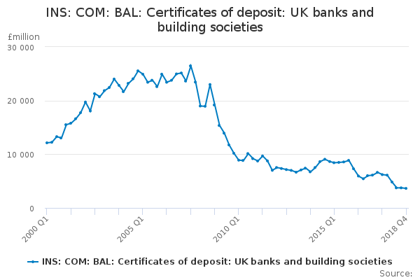 Download this time seriesINS: COM: BAL: Certificates of deposit: UK banks and building societies