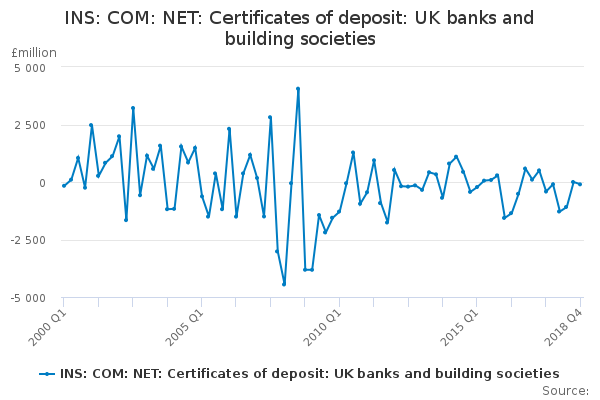 Download this time seriesINS: COM: NET: Certificates of deposit: UK banks and building societies