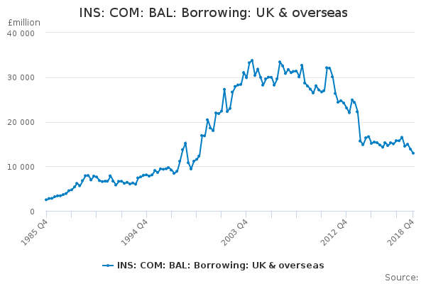 Download this time seriesINS: COM: BAL: Borrowing: UK & overseas
