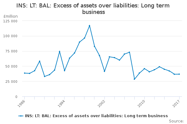 Download this time seriesINS: LT: BAL: Excess of assets over liabilities: Long term business