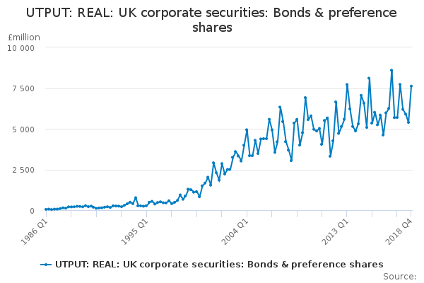Download this time seriesUTPUT: REAL: UK corporate securities: Bonds & preference shares