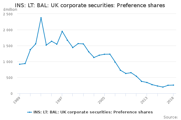 Download this time seriesINS: LT: BAL: UK corporate securities: Preference shares