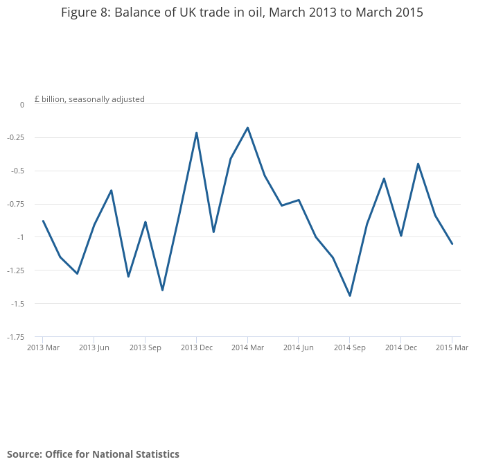 Figure 8: Balance of UK trade in oil, March 2013 to March 2015