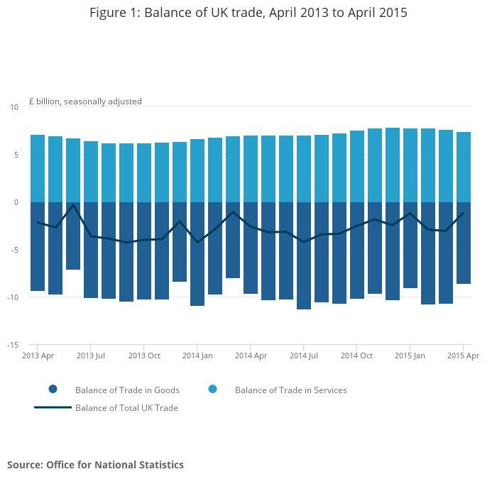 Figure 1: Balance of UK trade, April 2013 to April 2015