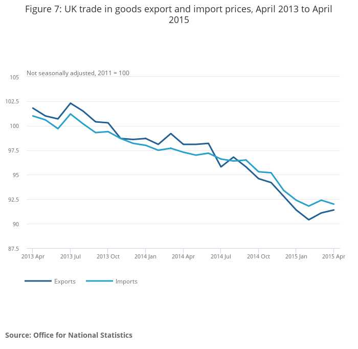 Figure 7: UK trade in goods export and import prices, April 2013 to April 2015