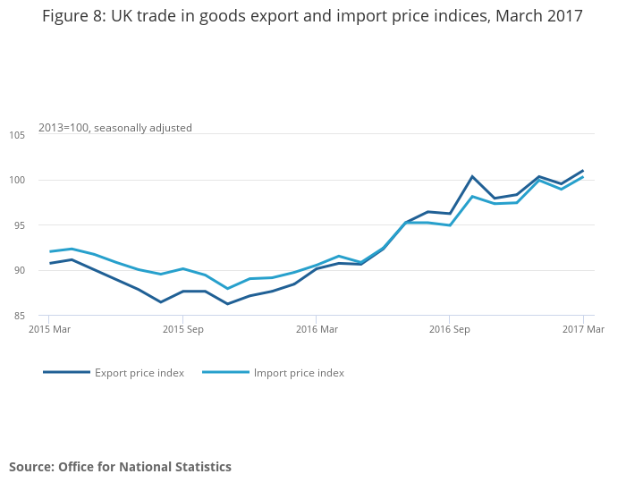 Figure 8: UK trade in goods export and import price indices, March 2017