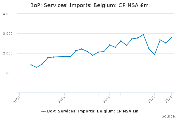 Download this time seriesBoP: Services: Imports: Belgium: CP NSA £m