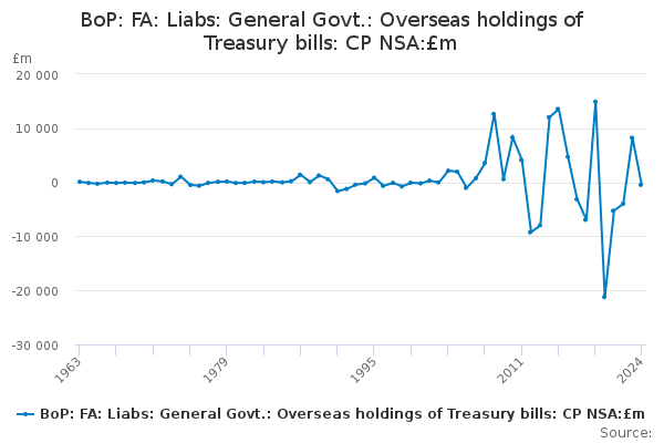 Download this time seriesBoP: FA: Liabs: General Govt.: Overseas holdings of Treasury bills: CP NSA:£m
