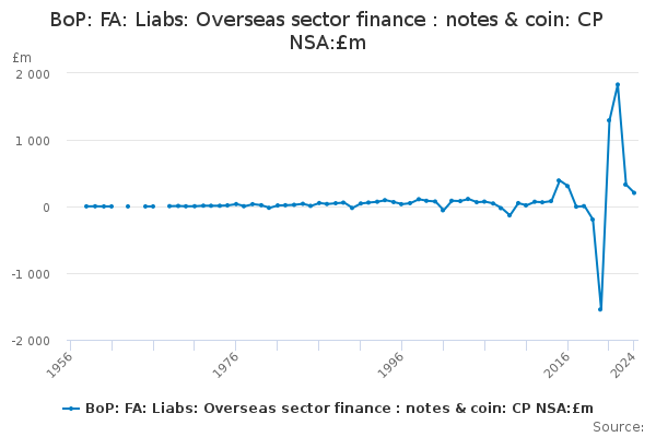 Download this time seriesBoP: FA: Liabs: Overseas sector finance : notes & coin: CP NSA:£m