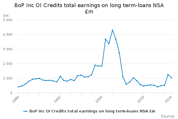 Download this time seriesBoP Inc OI Credits total earnings on long term-loans NSA £m
