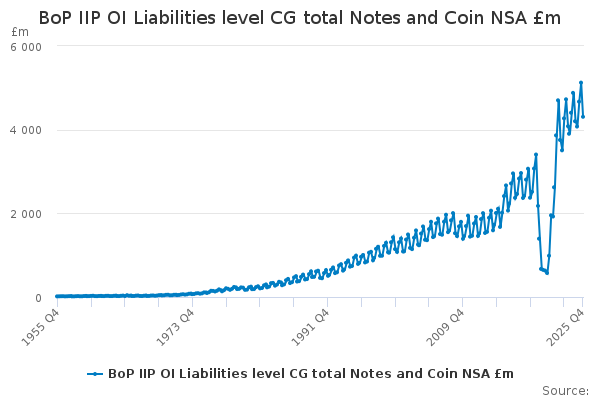 Download this time seriesBoP IIP OI Liabilities level CG total Notes and Coin NSA £m