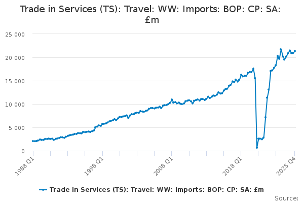 Download this time seriesTrade in Services (TS): Travel: WW: Imports: BOP: CP: SA: £m