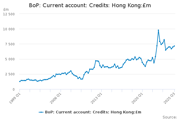 Download this time seriesBoP: Current account: Credits: Hong Kong:£m