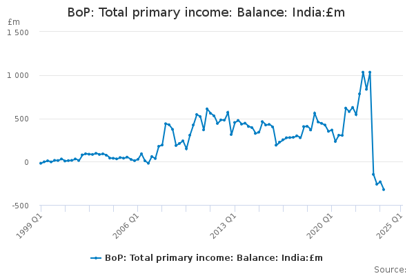 Download this time seriesBoP: Total primary income: Balance: India:£m