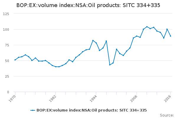 Download this time seriesBOP:EX:volume index:NSA:Oil products: SITC 334+335