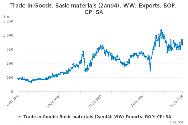 Download this time seriesTrade in Goods: Basic materials (2and4): WW: Exports: BOP: CP: SA
