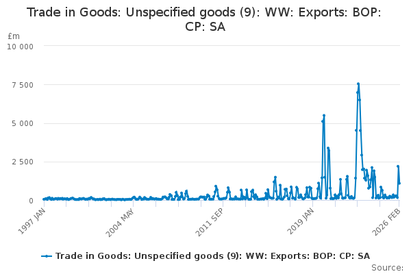 Download this time seriesTrade in Goods: Unspecified goods (9): WW: Exports: BOP: CP: SA