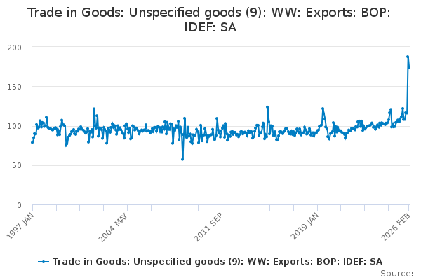 Download this time seriesTrade in Goods: Unspecified goods (9): WW: Exports: BOP: IDEF: SA