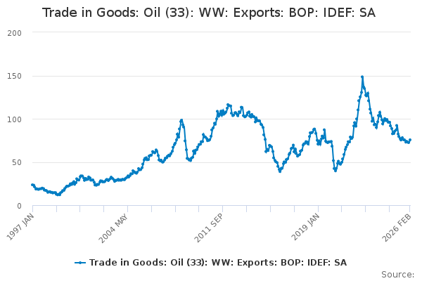 Download this time seriesTrade in Goods: Oil (33): WW: Exports: BOP: IDEF: SA