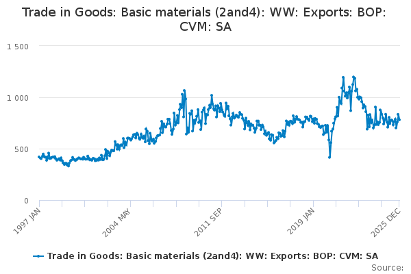 Download this time seriesTrade in Goods: Basic materials (2and4): WW: Exports: BOP: CVM: SA