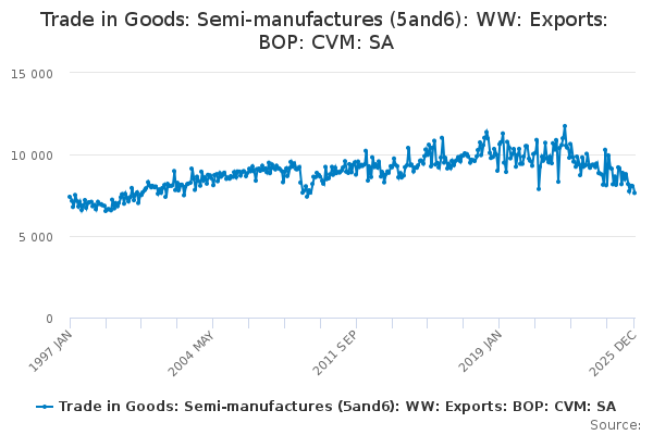 Download this time seriesTrade in Goods: Semi-manufactures (5and6): WW: Exports: BOP: CVM: SA
