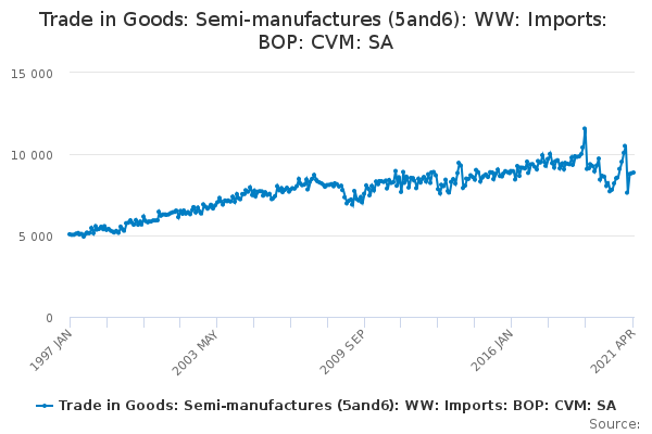 Download this time seriesTrade in Goods: Semi-manufactures (5and6): WW: Imports: BOP: CVM: SA