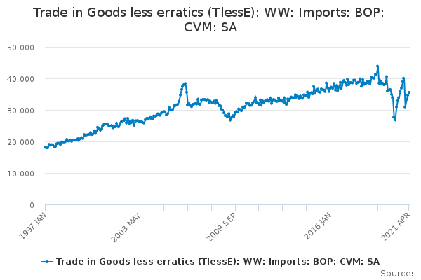 Download this time seriesTrade in Goods less erratics (TlessE): WW: Imports: BOP: CVM: SA