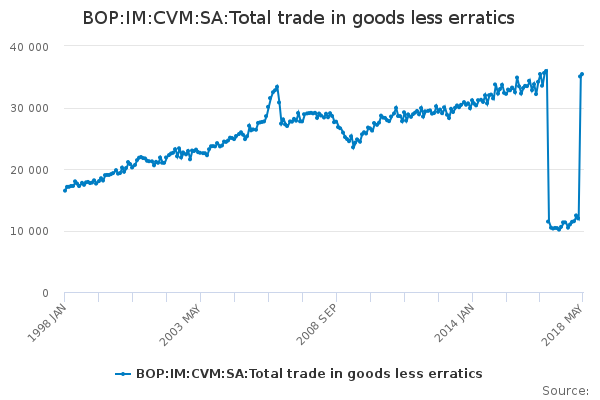 Download this time seriesBOP:IM:CVM:SA:Total trade in goods less erratics
