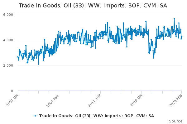Download this time seriesTrade in Goods: Oil (33): WW: Imports: BOP: CVM: SA