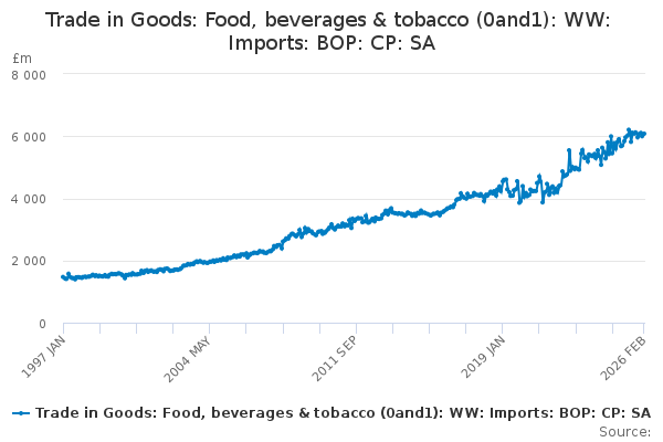 Download this time seriesTrade in Goods: Food, beverages & tobacco (0and1): WW: Imports: BOP: CP: SA