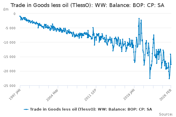 Download this time seriesTrade in Goods less oil (TlessO): WW: Balance: BOP: CP: SA