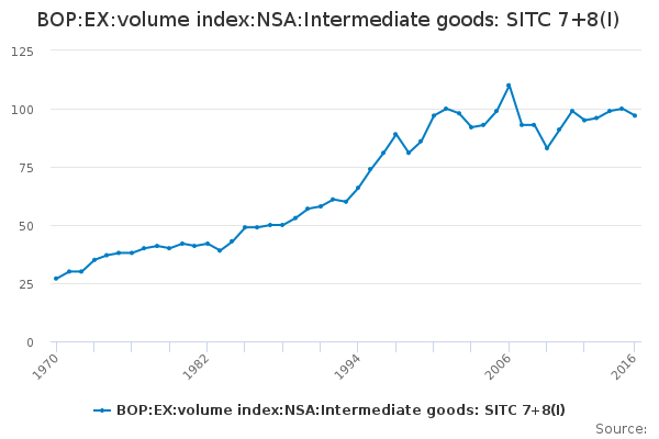 Download this time seriesBOP:EX:volume index:NSA:Intermediate goods: SITC 7+8(I)