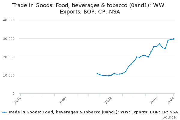 Download this time seriesTrade in Goods: Food, beverages & tobacco (0and1): WW: Exports: BOP: CP: NSA