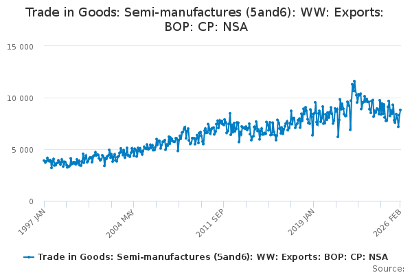 Download this time seriesTrade in Goods: Semi-manufactures (5and6): WW: Exports: BOP: CP: NSA