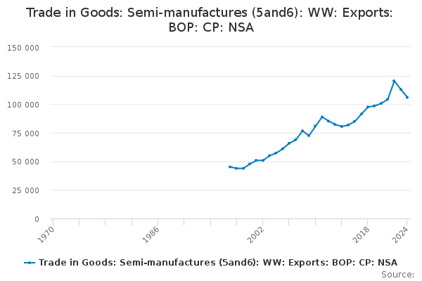 Download this time seriesTrade in Goods: Semi-manufactures (5and6): WW: Exports: BOP: CP: NSA