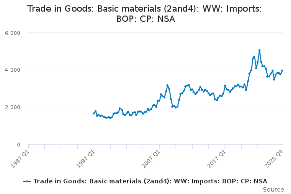 Download this time seriesTrade in Goods: Basic materials (2and4): WW: Imports: BOP: CP: NSA
