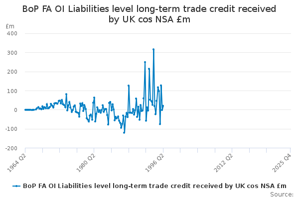 Download this time seriesBoP FA OI Liabilities level long-term trade credit received by UK cos NSA £m