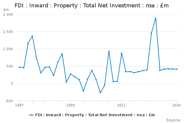 Download this time seriesFDI : Inward : Property : Total Net Investment : nsa : £m
