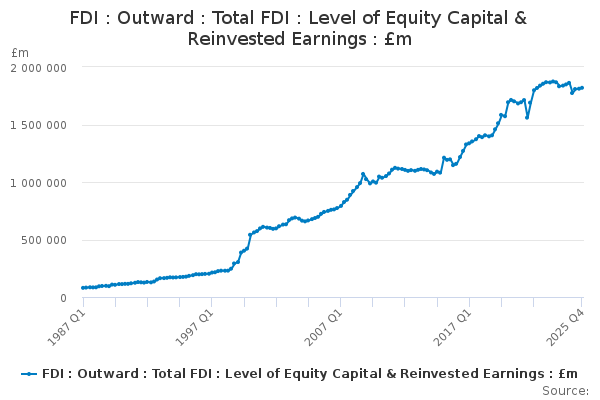 Download this time seriesFDI : Outward : Total FDI : Level of Equity Capital & Reinvested Earnings : £m