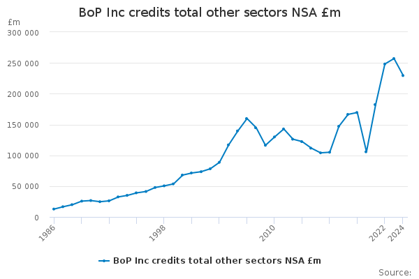 Download this time seriesBoP Inc credits total other sectors NSA £m