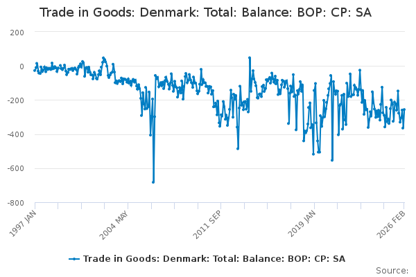 Download this time seriesTrade in Goods: Denmark: Total: Balance: BOP: CP: SA