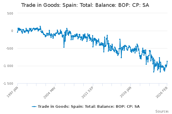 Download this time seriesTrade in Goods: Spain: Total: Balance: BOP: CP: SA